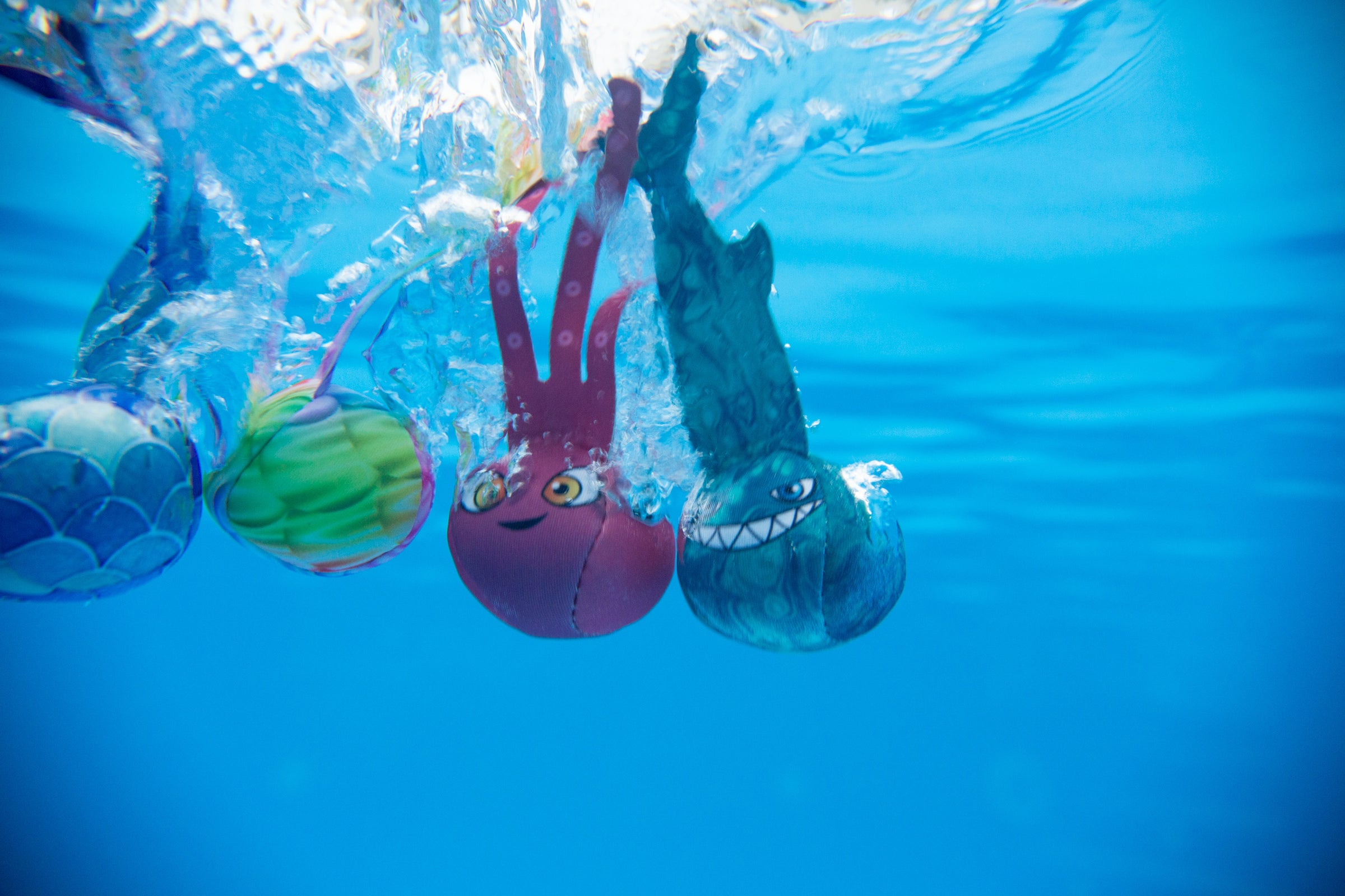 Forget plastic dive toys. Our cute new dive toys are made with lycra and filled with soft sand.