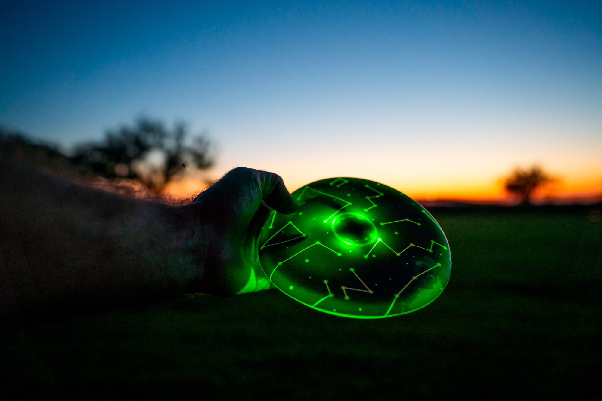 This Wingman is LIT! The silicone Wingman UFO features a bright green LED light and 3 light modes for premium flight at night. It is perfect for nighttime throwing and it is soft to catch.