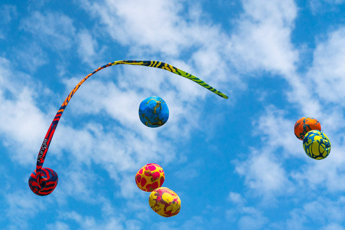 FLUUUUUNGLE! Introducing our new ball toss game with a twist! Flungle features a target you launch by the tail, and 6 sand balls you toss to see who lands closest to it. Use the tail to measure and calculate points. Each color on the tail represents a different point.