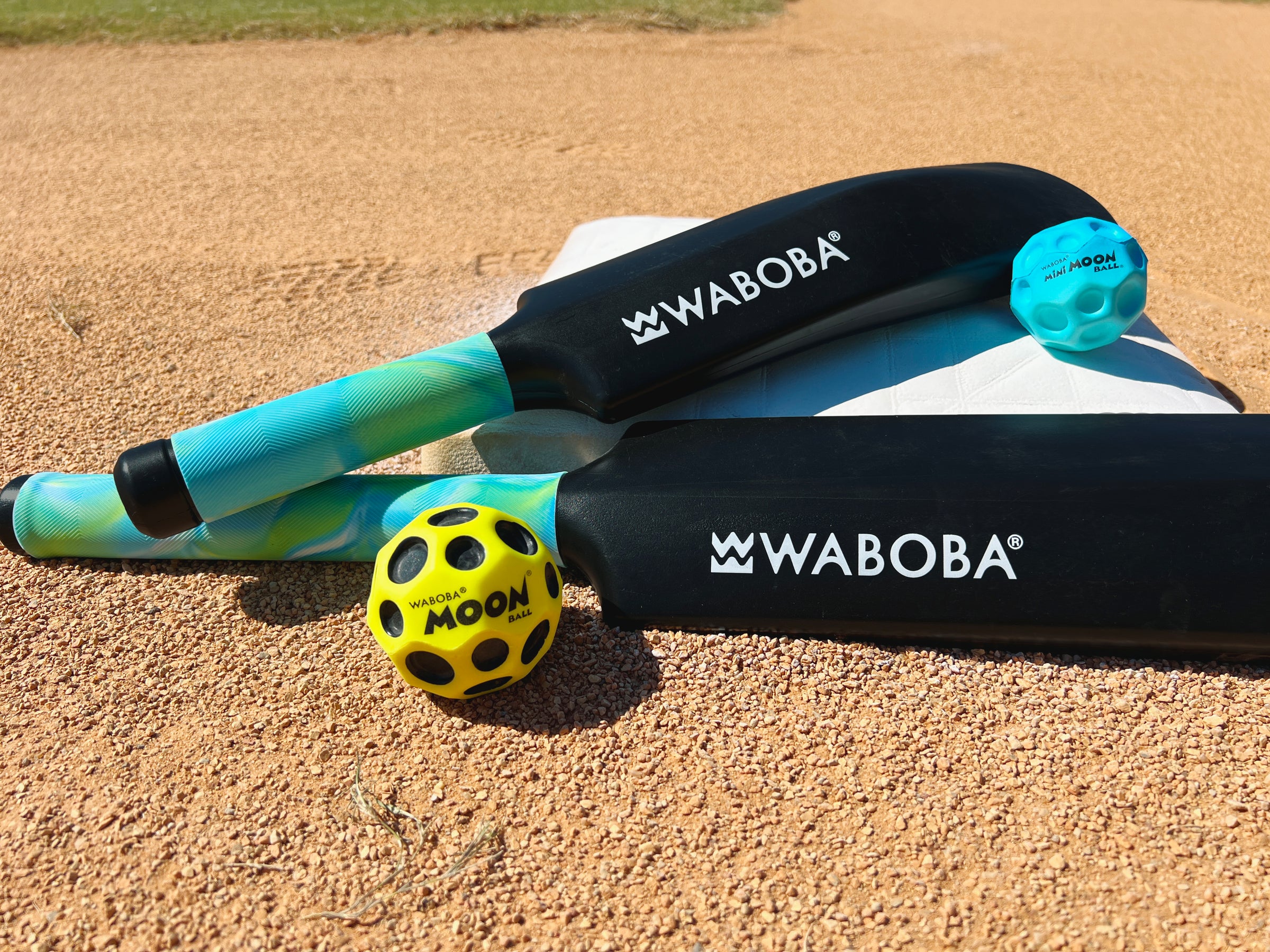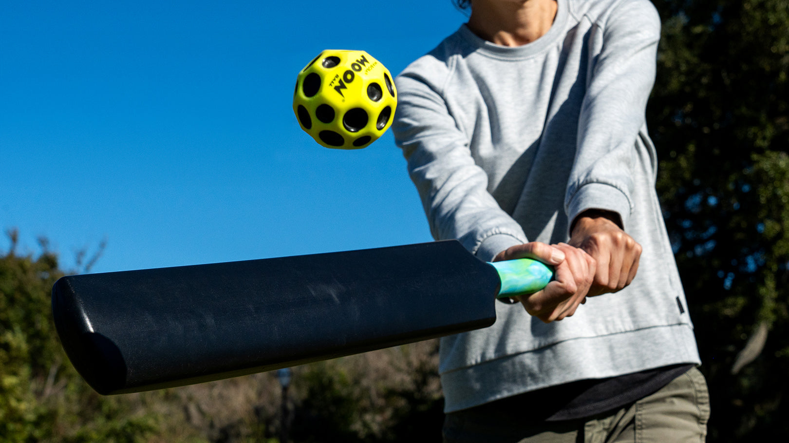 Forget wiffle ball bats. The Cracket sets from Waboba feature a mini and regular sized Cricket bat. Each set comes with a Moon Ball.